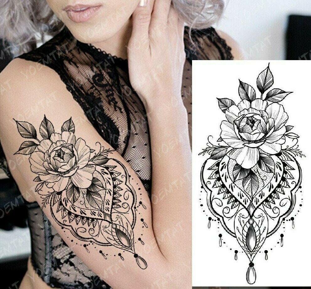 Flowers Black Lace Tattoo Fake Press Sticker Women Mens Etsy Uk